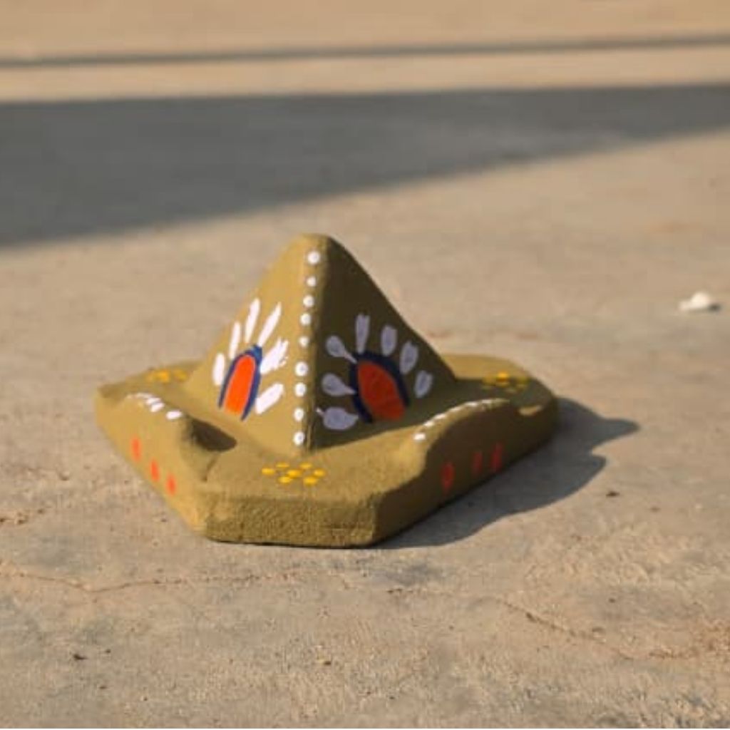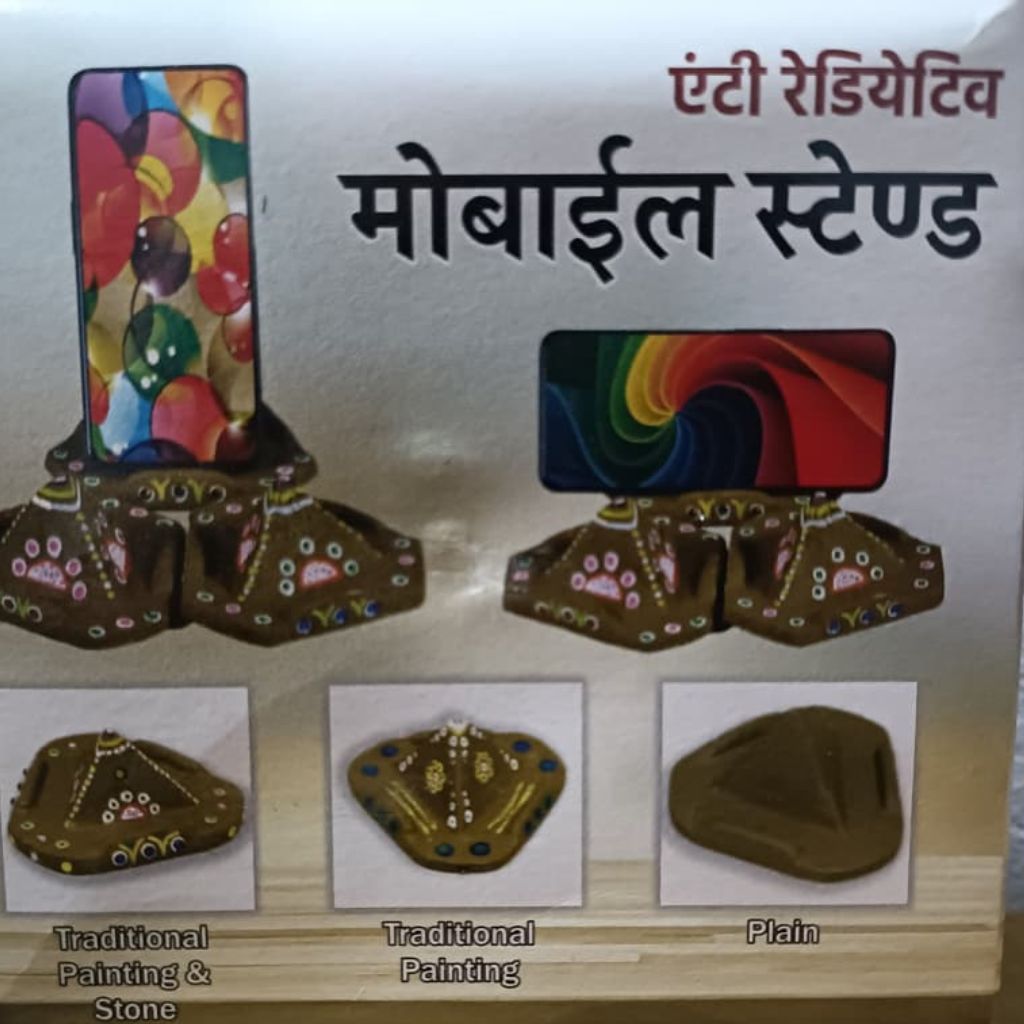 This Handcrafted Mobile Stand made from pure Desi Cow Dung is not just a phone holder It is a natural radiation absorber, a protector of positive energy, and a spiritually energizing product created using traditional Vedic methods.Cow dung naturally contains properties that absorb harmful radiation coming from mobile phones, Wi-Fi routers and electronic devices, helping create a safe, balanced and sattvic environment.