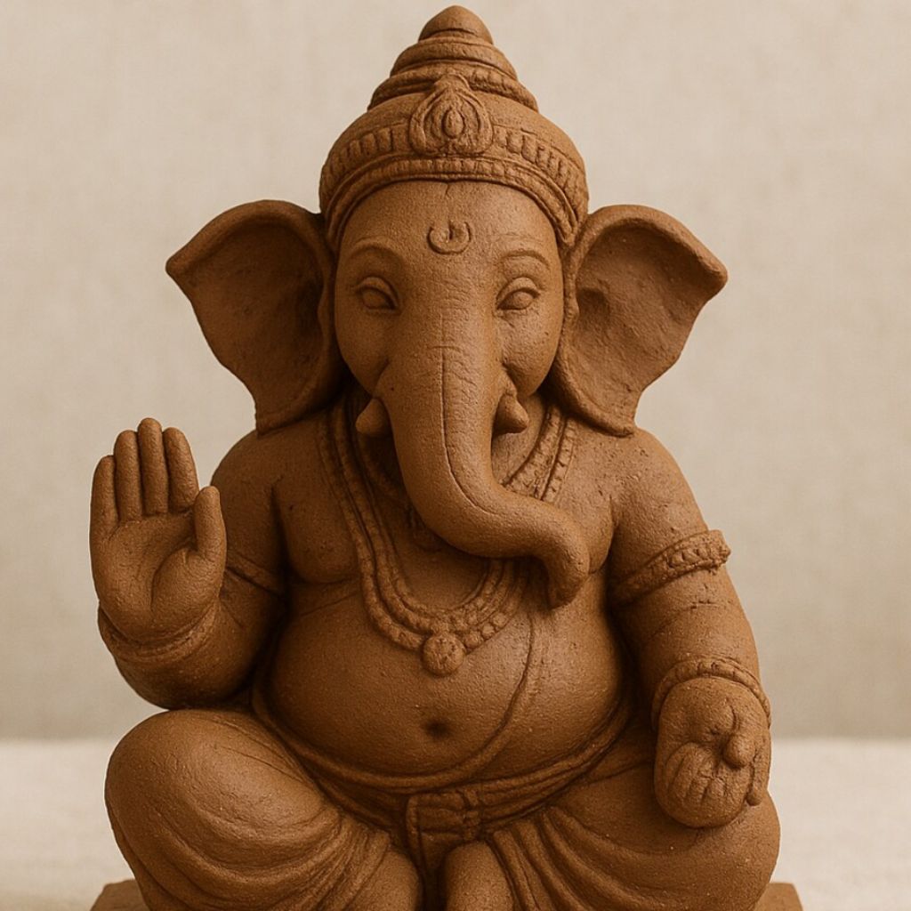 Cow dung is considered sacred and auspicious in Hindu tradition. A Ganesh idol made from cow dung invites positive energy, prosperity, and divine blessings into your home. The idol is completely safe for immersion and decomposes naturally, turning into nutrient-rich manure for plants.