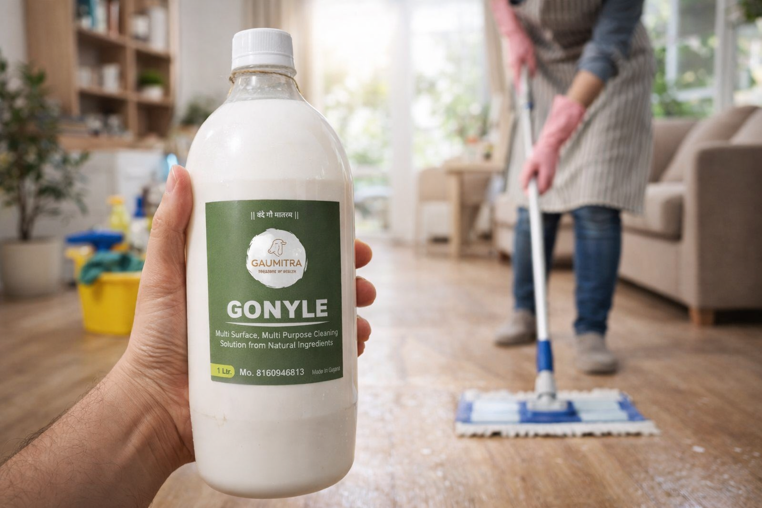 - Natural disinfectant with cow urine extract (Gomutra) for enhanced germ-killing